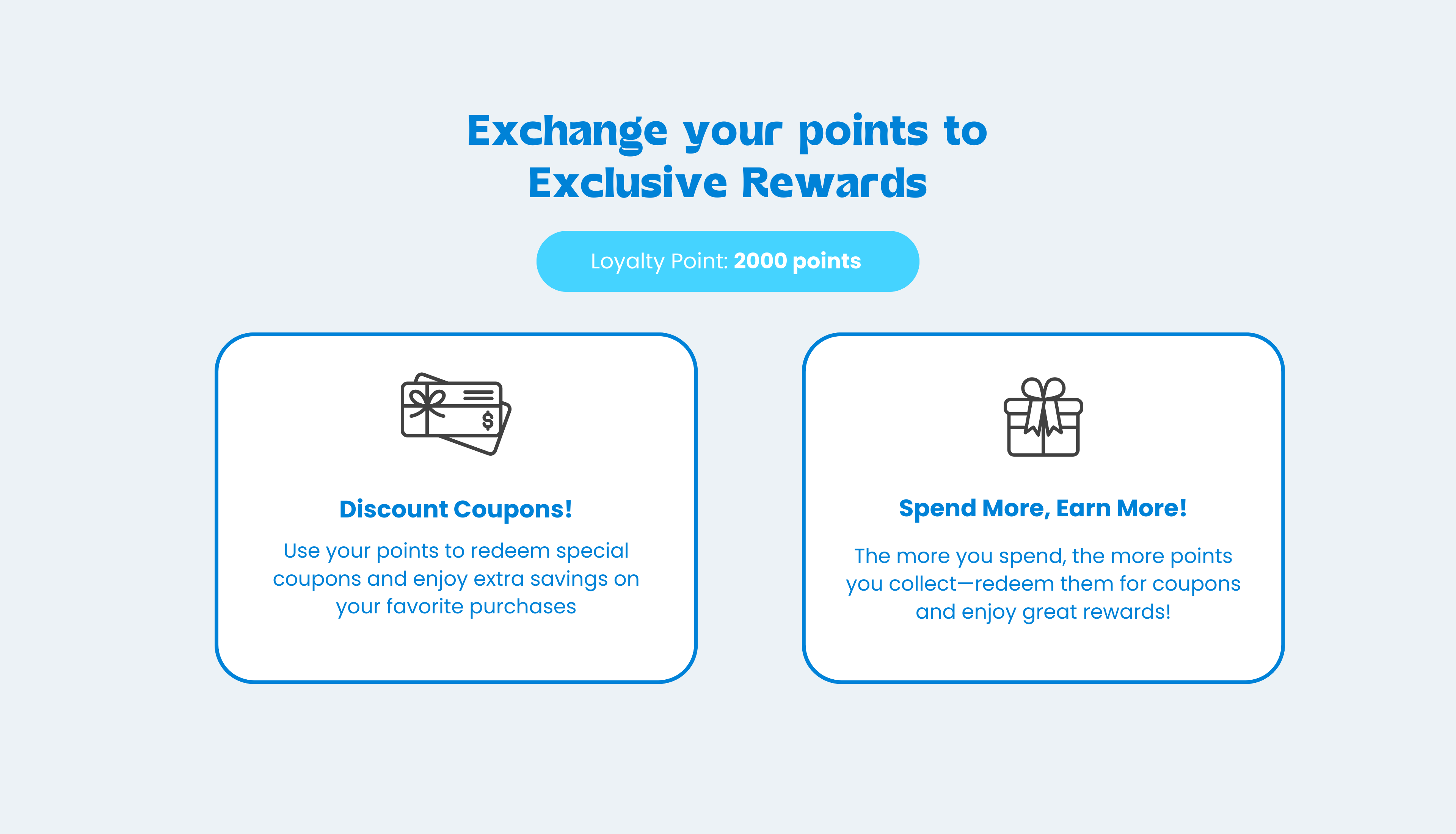 You earn 1 point for every RM1 spent. Accumulate points and redeem them for discount coupons or exclusive products on your next purchase!